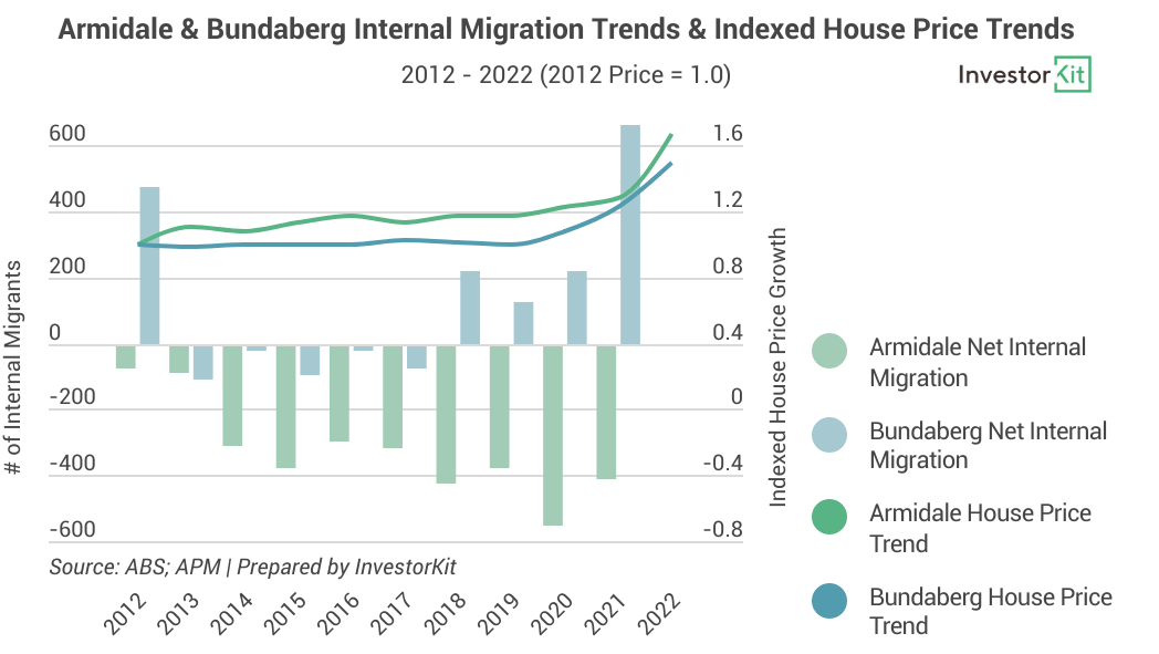 In InvestorKit, we never examine markets with any isolated indicators. Every location is assessed from all data points - demographics, economics, construction activities, sales and rental market pressure, etc. That is why we do not limit our options to high net internal migration regions (eg. Bundaberg, Toowoomba, Port Macquarie, etc.) and identify growing hotspots with low/negative net internal migration (Wagga Wagga, Shepparton, Armidale, etc.). Would like to work with us and find your next fast grower? Click here and request your 45-min FREE no-obligation consultation today!