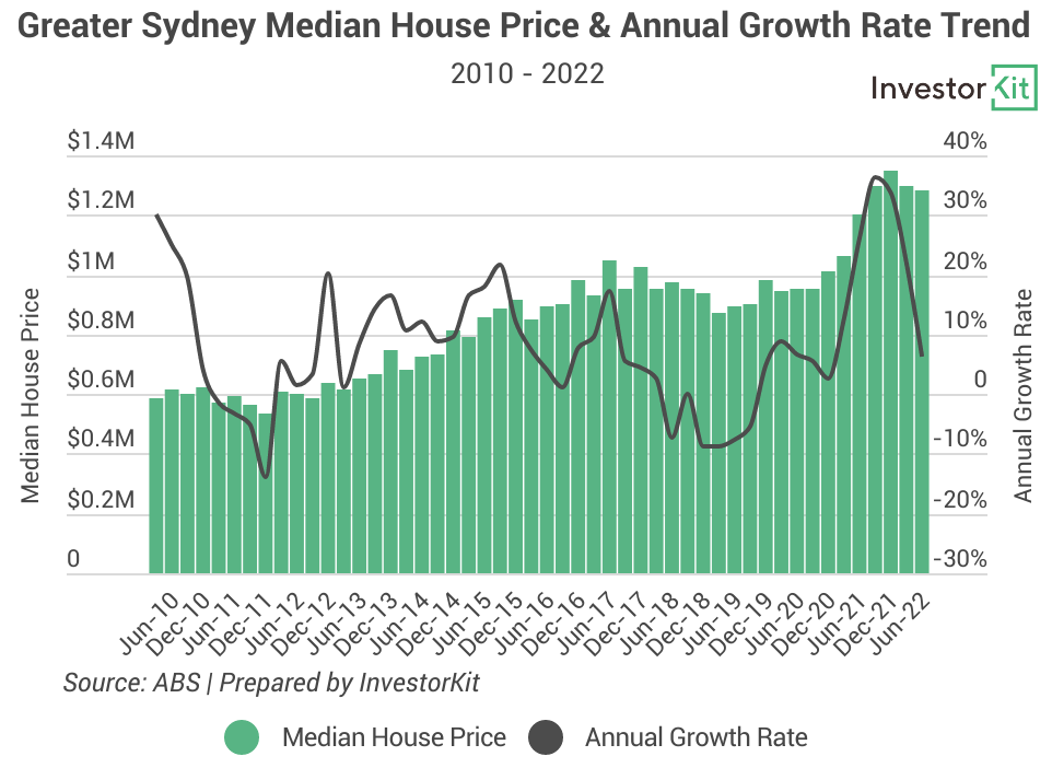 Greater Sydney - House price growth curve was relatively flat from 2010 to 2012 and started surging in 2013 (below chart).