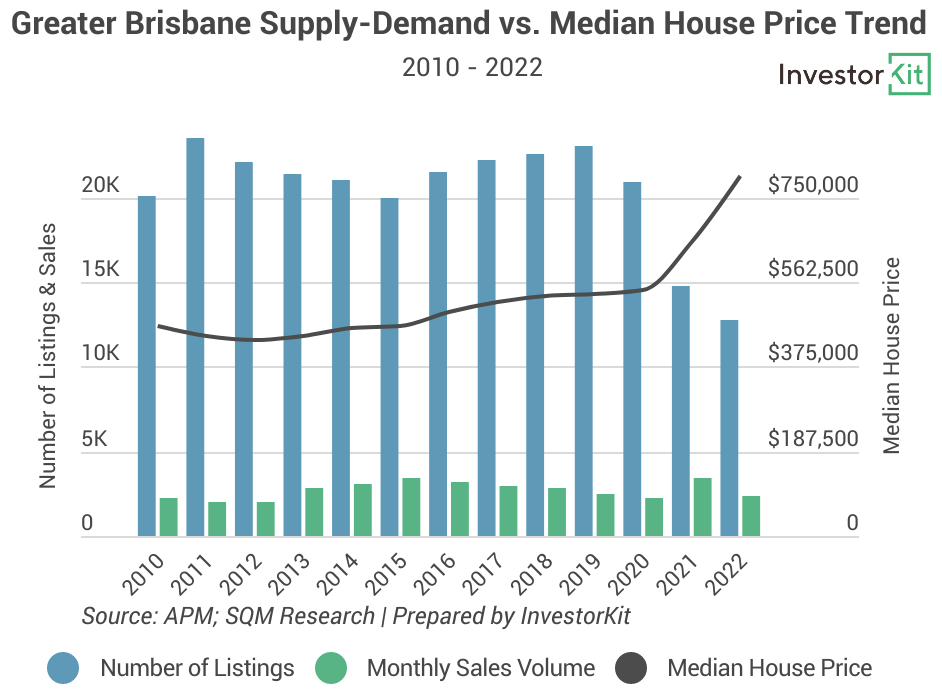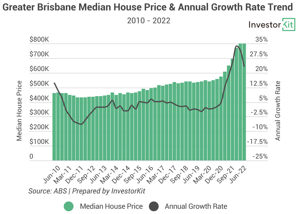 Greater Brisbane - House price growth was much slower in the 2010s than in the previous decade until it picked up speed in late 2020 (below chart). InvestorKit entered the market in 2019 and helped our clients enjoy the whole growth phase of Brisbane.