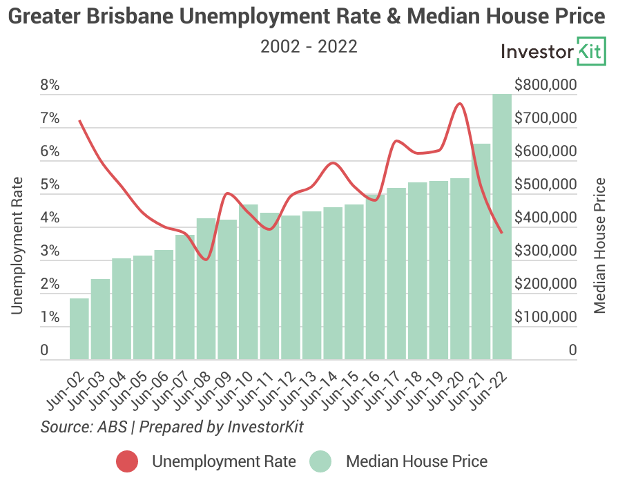 • Greater Brisbane’s unemployment rate had been trending up since 2008 and only started dropping in 2020, in line with the thriving economy that COVID didn’t severely impact. The flourishing economy ensured the high purchasing power of the locals, boosting the 2020 property boom.