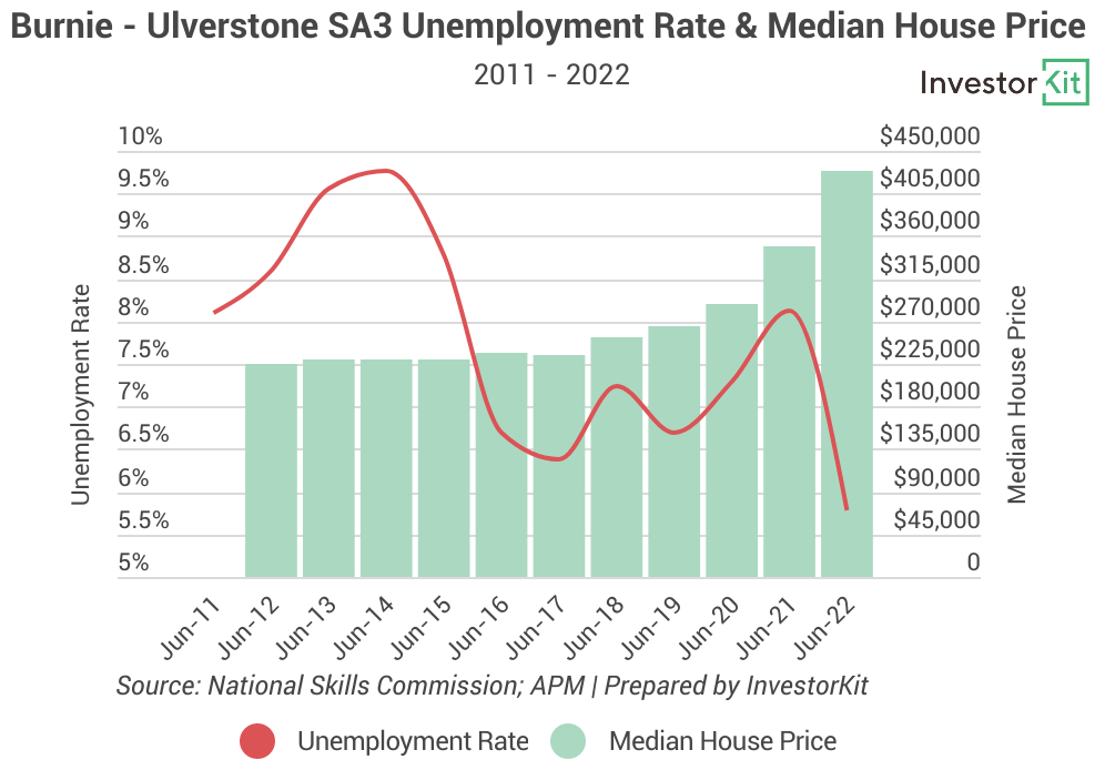 • Burnie’s unemployment rate decreased from 9.7% in 2014 to 6.4% in 2017 and remained low for a few years. If the other indicators also look good, which we will discuss later, the unemployment drop should be able to lead to rising housing demand and price growth in a couple of years.