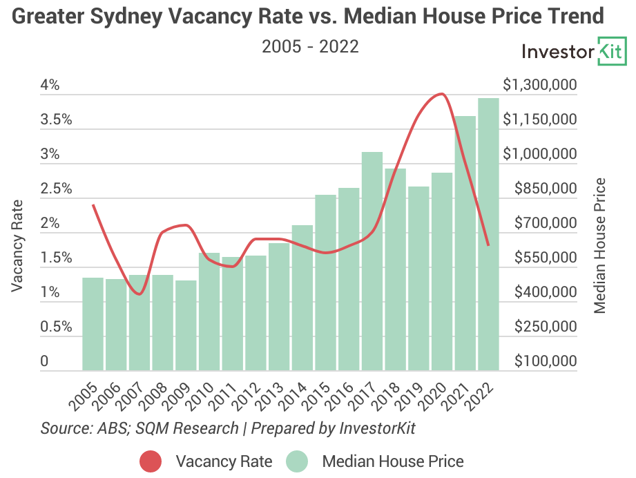 • Sydney’s rental vacancy rate dropped from 2%+ to around 1.6% in 2010 and stayed below 2% until 2017. The lowered vacancy rate indicated high pressure in the rental market, which was passed on to the sales market a couple of years later.