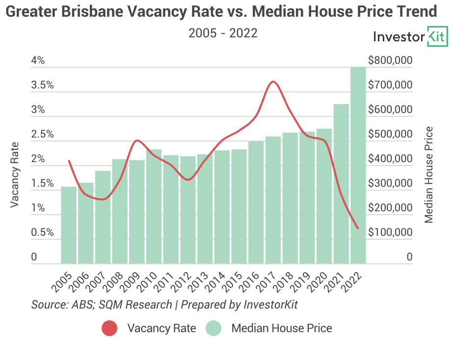 • Brisbane’s rental vacancy rate has been largely trending up since the 2006 rental crisis and started a sharp decline in 2017. The steep drop is in line with the increasing internal migration trend clearly shows rising housing demand in Brisbane.
